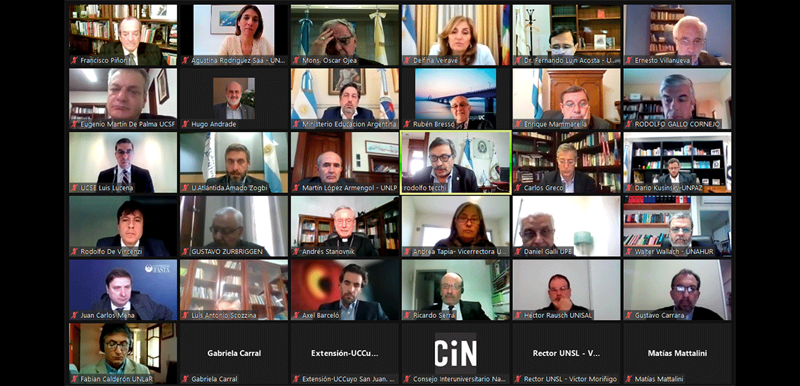 La apertura institucional del II Congreso Interuniversitario Laudato Si´ contó con la participación de Jaime Perczyk, ministro de Educación de la Nación; Mons. Oscar Ojea, presidente de la Conferencia Episcopal Argentina (CEA); Carlos Greco, presidente del Consejo Interuniversitario Nacional (CIN); y Gastón O’Donnell, representante del Consejo de Rectores de Universidades Privadas (CRUP). Además, diversas autoridades superiores y eclesiásticas se sumaron al evento que se realizó desde la sede central del CIN, contempló la participación remota e inauguró el congreso.